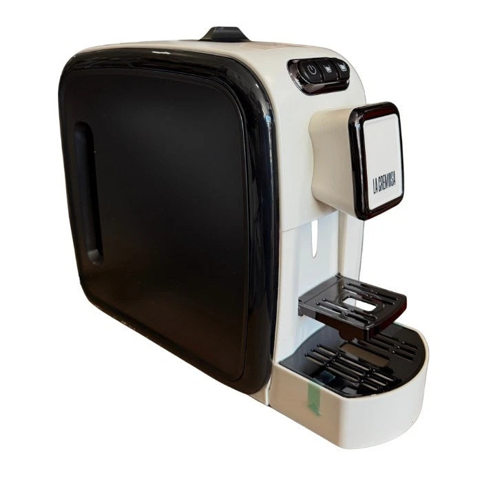 Macchina da caffè a cialde LA CREMOSA, ideale per chi desidera un espresso cremoso o un caffè lungo in modo semplice e veloce. Design compatto ed elegante, perfetta per la casa, l’ufficio o piccoli spazi.